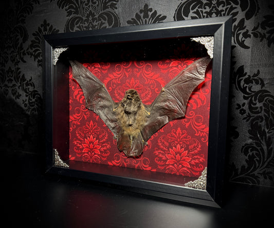 11x9 Taxidermy Bat Shadowbox in Red Damask - READY TO SHIP