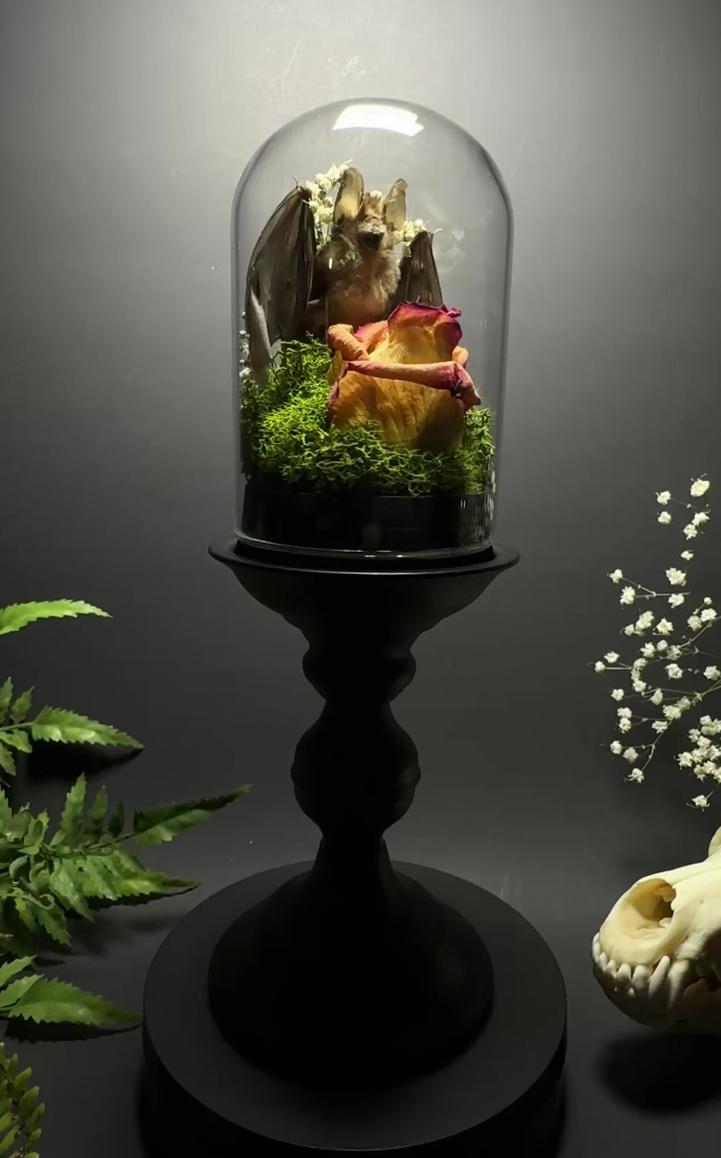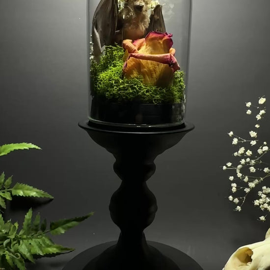Large Taxidermy Bat & Rose Pedestal Dome Display