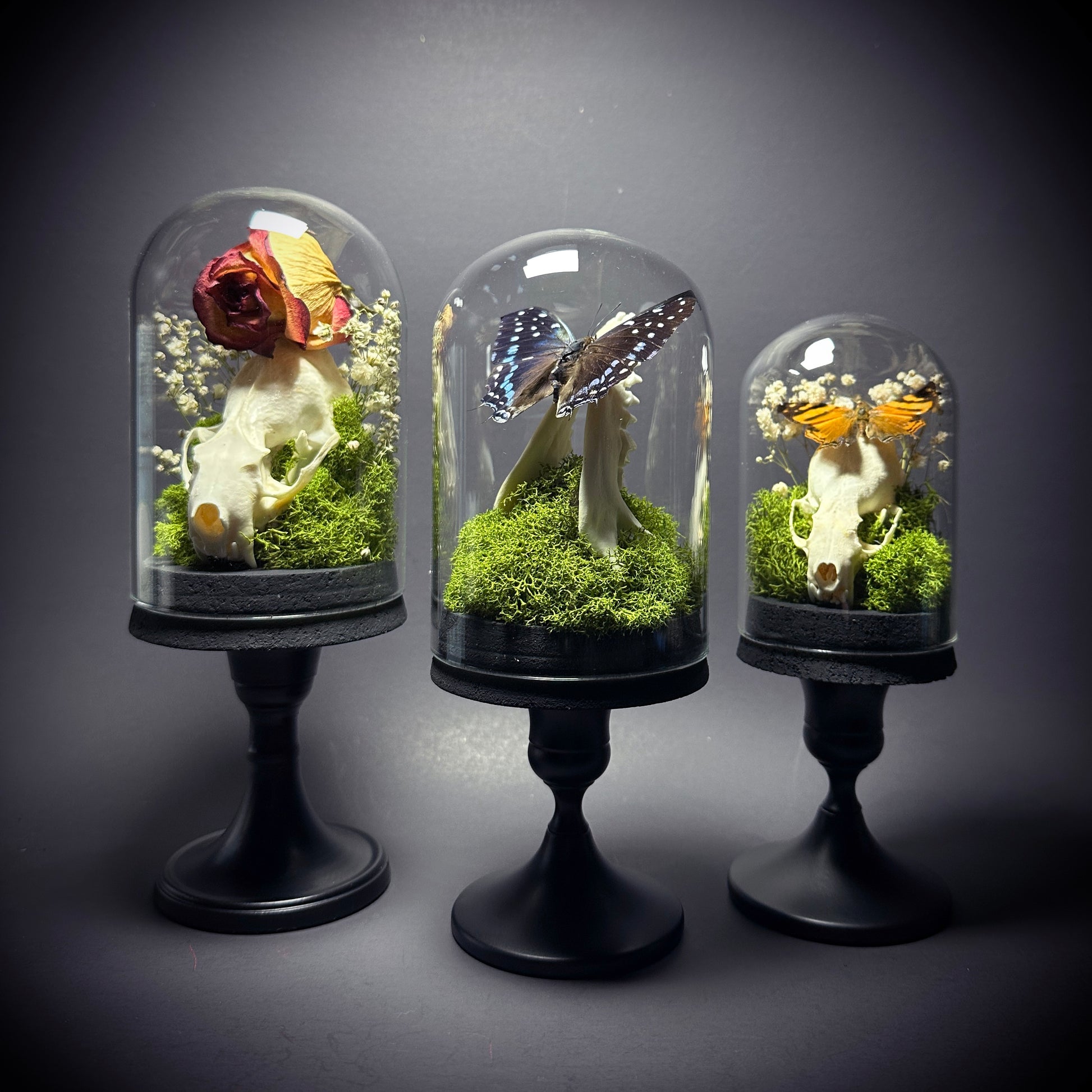 THIS IS A OOAK ITEM - THIS IS THE EXACT DISPLAY YOU WILL RECEIVE. Domes are not sealed but are firmly in place and shouldn't budge without force. Please use care when handling.